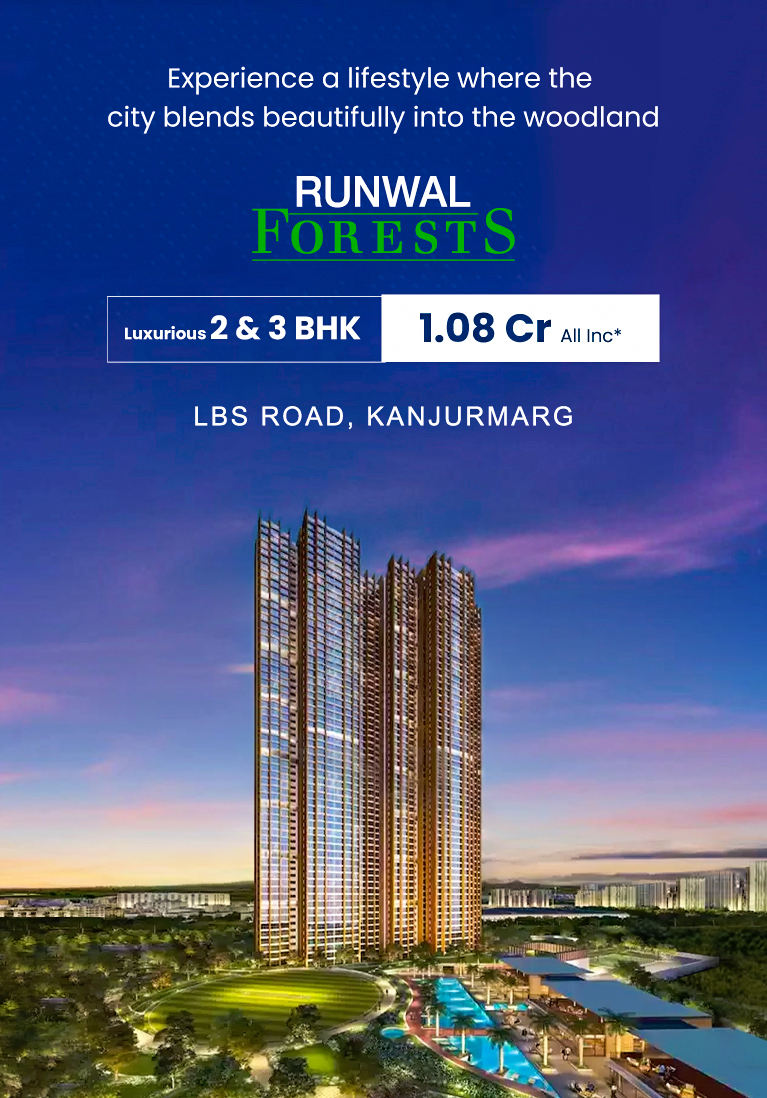 The 3 BHK flats start from Rs 2.53 Cr at Runwal Forests Kanjurmarg.